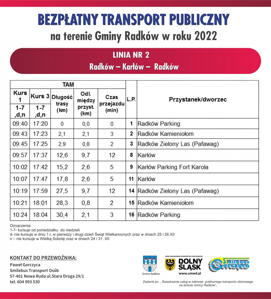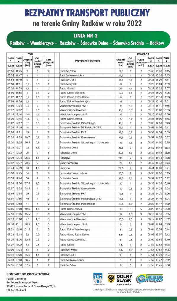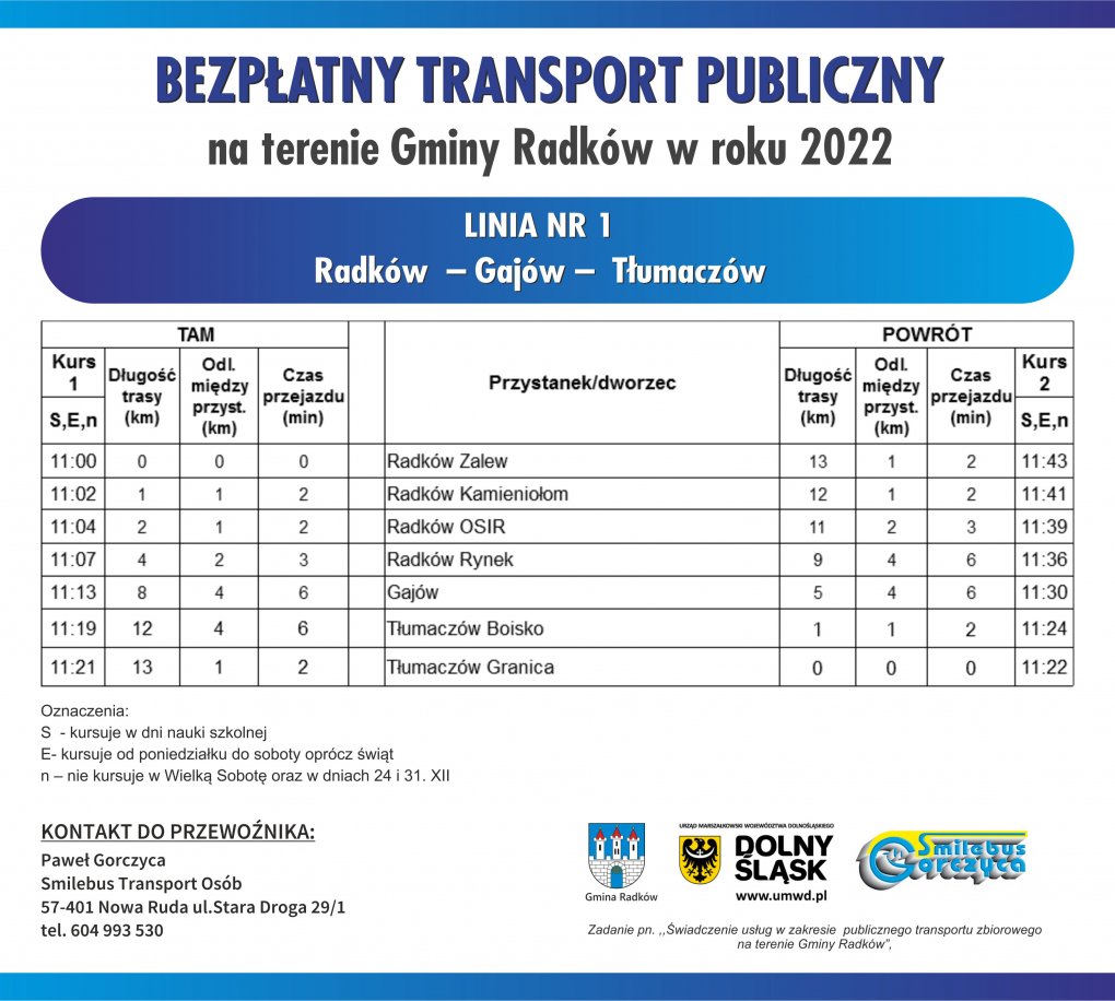 Oferta bezpłatnego transportu publiczniego w Gminie Radków jest aktualna również w latach 2023-2024 zgodnie z rozkładem jazdy podanym poniżej!